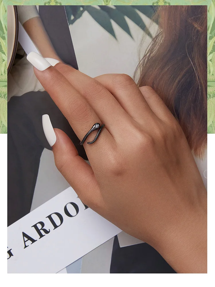 WOSTU, nuevo anillo de serpiente negra, 100% Plata de Ley 925 chapada en oro negro, anillo abierto de serpiente Animal para mujer, joyería fina S925 presente