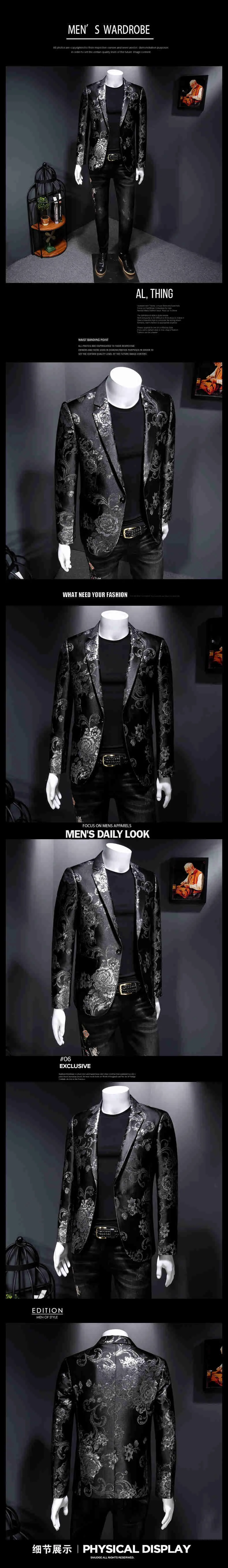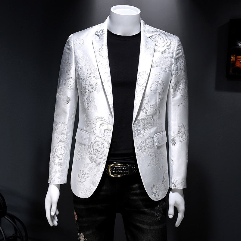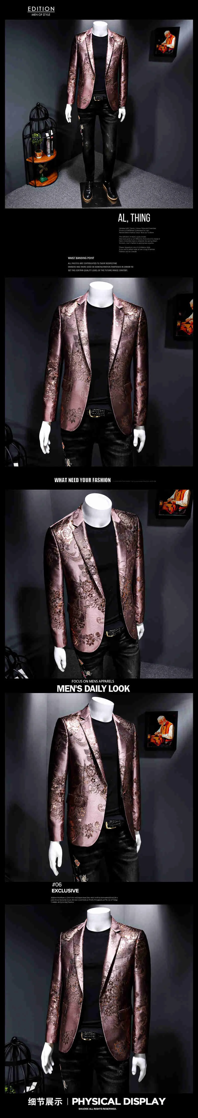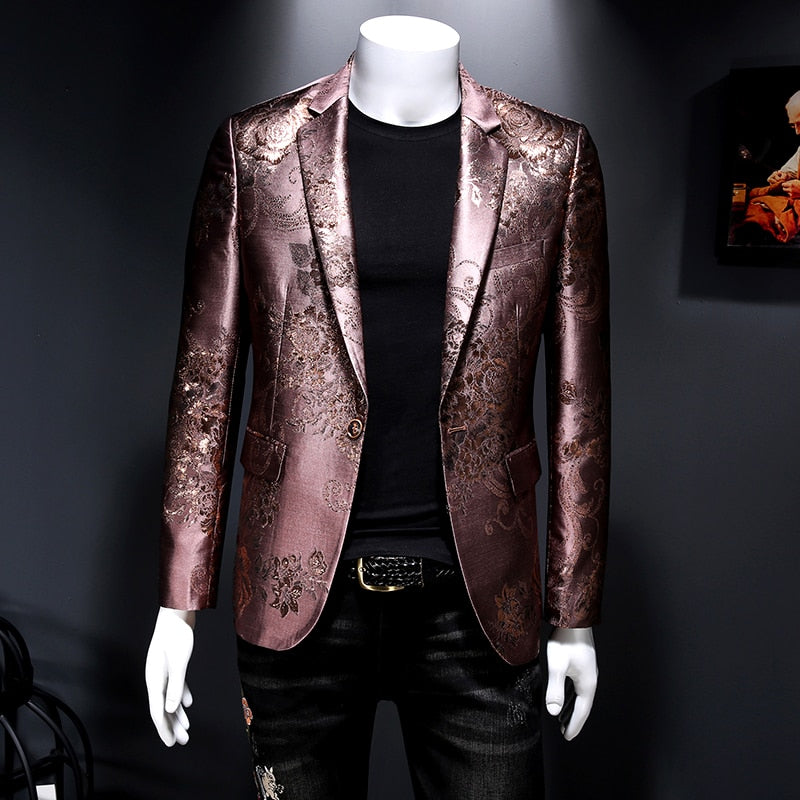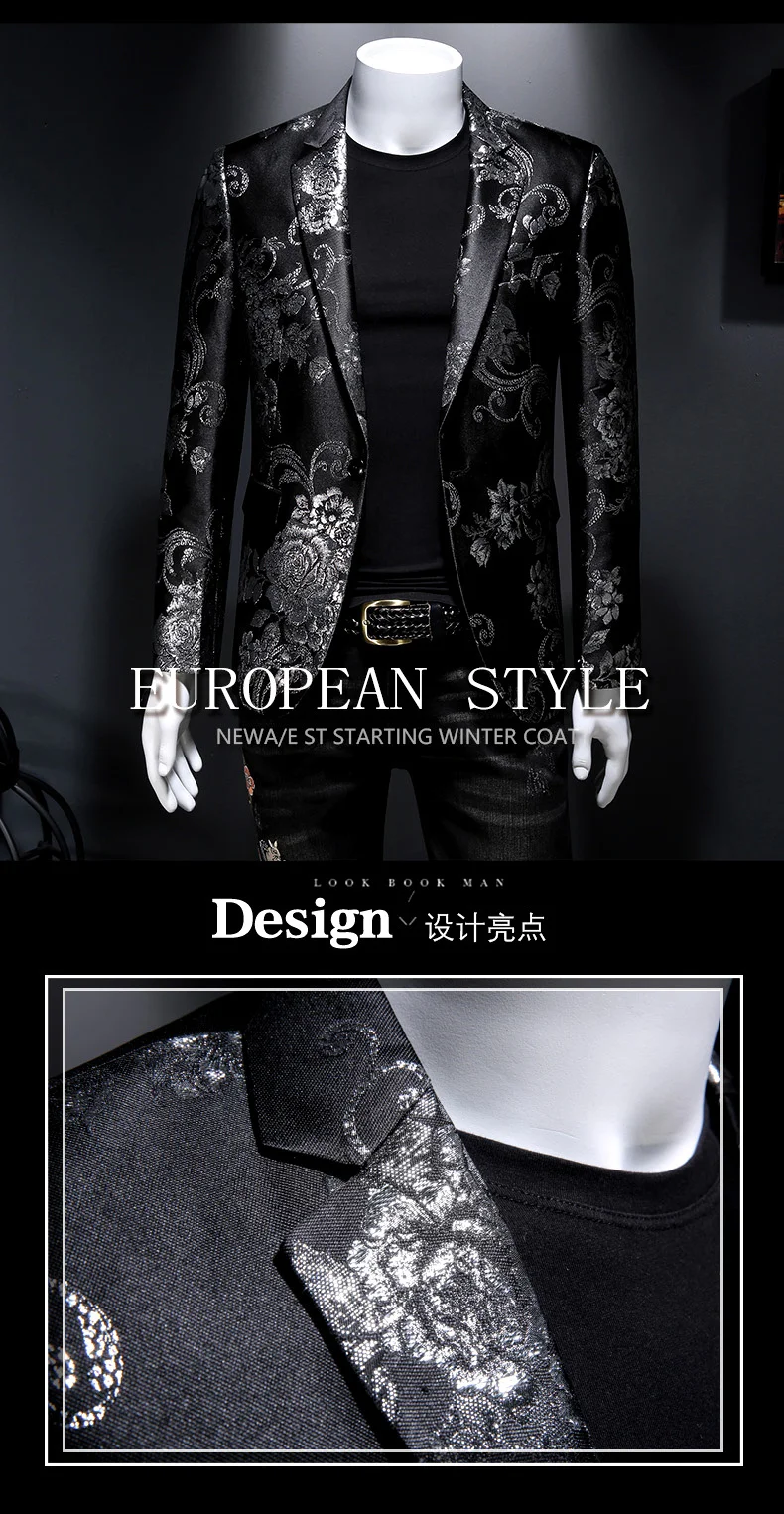 Mens Blazer Vintage Jacquard Blazer Hombre Wedding Groom Suit Metal Gold Yarn Luxury Dinner Chaqueta Hombre Formal Slim Blazer